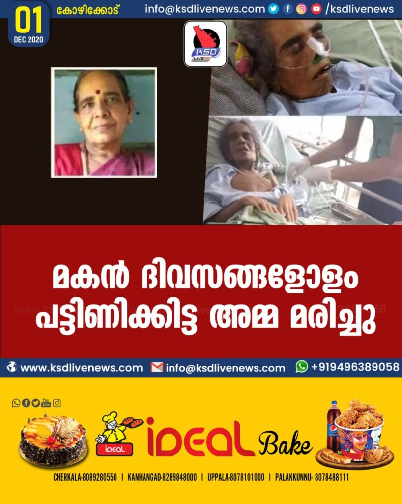 മകൻ ദിവസങ്ങളോളം പട്ടിണിക്കിട്ട അമ്മ മരിച്ചു