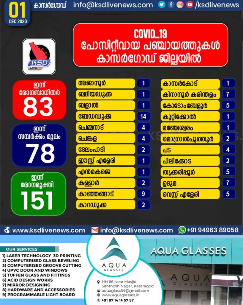 കാസർഗോഡ് ജില്ലയിൽ ഇന്ന് കോവിഡ് സ്ഥിരീകരിച്ചവരുടെ പഞ്ചായത്ത് തിരിച്ചുള്ള സ്ഥിതി വിവര കണക്ക്