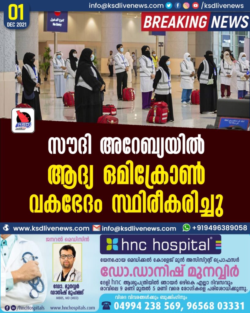 സൗദി അറേബ്യയില് ആദ്യ ഒമിക്രോണ് വകഭേദം സ്ഥിരീകരിച്ചു