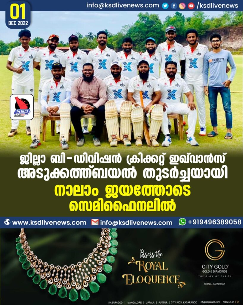 ജില്ലാ ബി-ഡിവിഷൻ ക്രിക്കറ്റ് ഇഖ്വാൻസ് അടുക്കത്ത്ബയല് തുടർച്ചയായി നാലാം ജയത്തോടെ സെമിഫൈനലിൽ