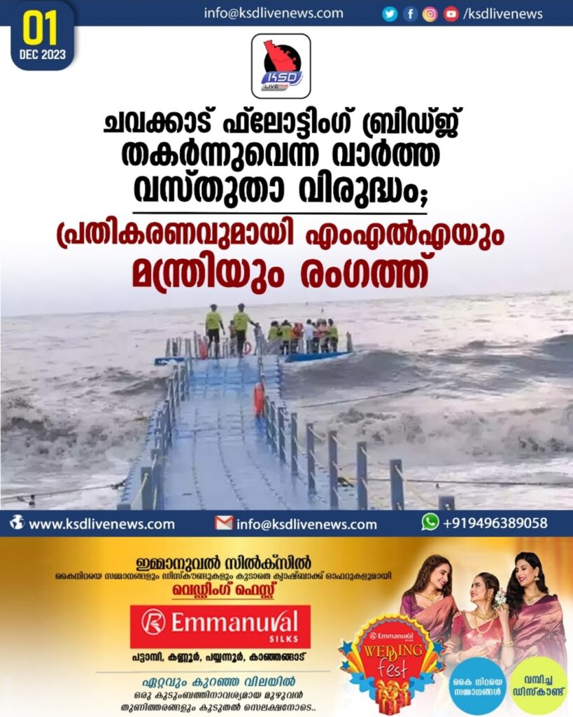 ചവക്കാട് ഫ്ലോട്ടിംഗ് ബ്രിഡ്ജ് തകർന്നുവെന്ന വാർത്ത വസ്തുതാ വിരുദ്ധം;  പ്രതികരണവുമായി എംഎൽഎയും മന്ത്രിയും രം​ഗത്ത്