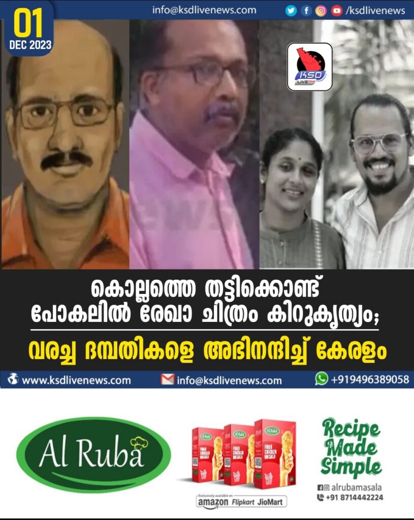 കൊല്ലത്തെ തട്ടിക്കൊണ്ട് പോകലില് രേഖാ ചിത്രം കിറുകൃത്യം; വരച്ച ദമ്ബതികളെ അഭിനന്ദിച്ച് കേരളം
