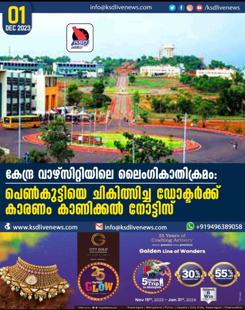കേന്ദ്ര വാഴ്സിറ്റിയിലെ ലൈംഗികാതിക്രമം: പെൺകുട്ടിയെ ചികിത്സിച്ച ഡോക്ടർക്ക് കാരണം കാണിക്കൽ നോട്ടിസ്