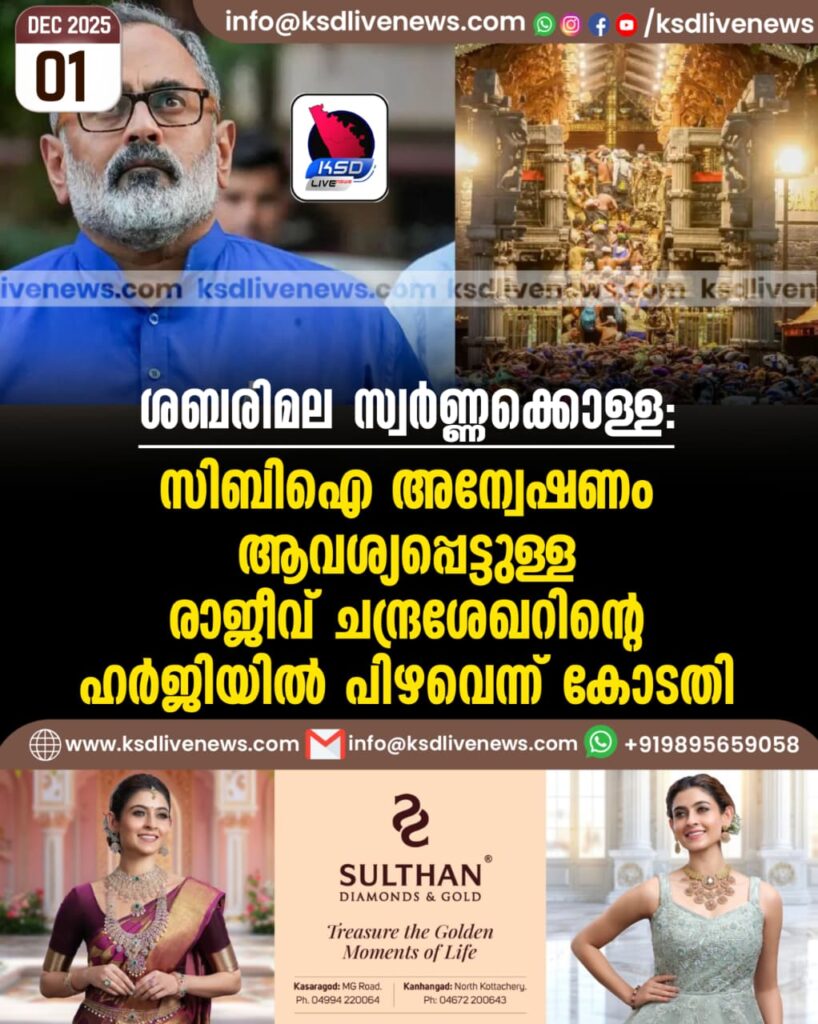 ശബരിമല സ്വര്ണ്ണക്കൊള്ള; സിബിഐ അന്വേഷണം ആവശ്യപ്പെട്ടുള്ള രാജീവ് ചന്ദ്രശേഖറിന്റെ ഹര്ജിയില് പിഴവെന്ന് കോടതി