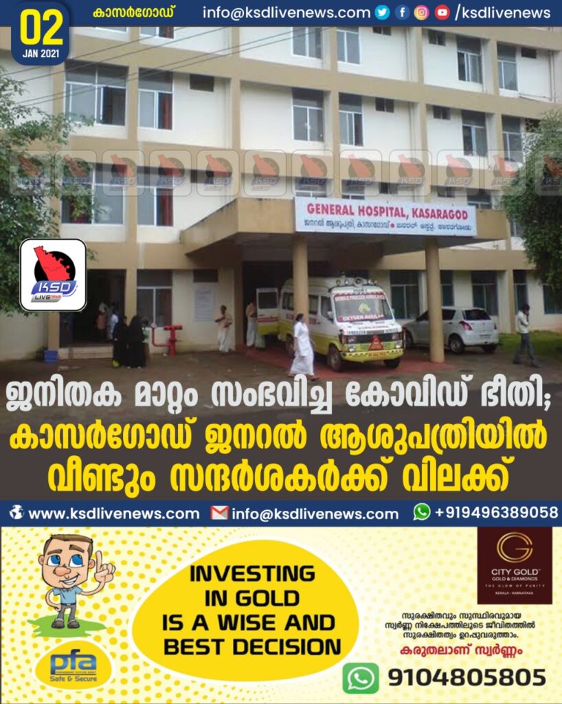 ജനിതക മാറ്റം സംഭവിച്ച കോവിഡ് ഭീതി : കാസർഗോഡ് ജനറൽ ആശുപത്രിയിൽ വീണ്ടും സന്ദർശകർക്ക് വിലക്ക്