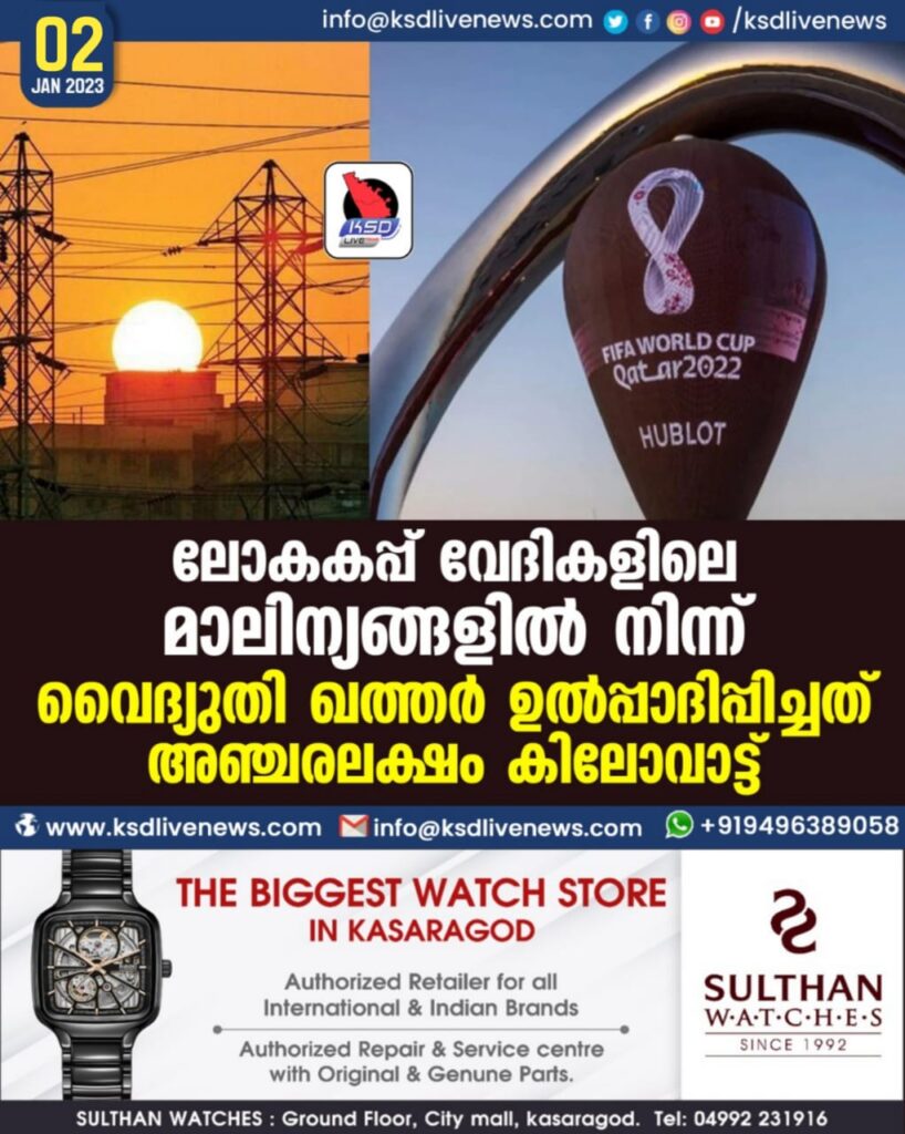 ‘ലോകകപ്പ് വേദികളിലെ മാലിന്യങ്ങളില് നിന്ന് വൈദ്യുതി’ ഖത്തര് ഉല്പ്പാദിപ്പിച്ചത് അഞ്ചരലക്ഷം കിലോവാട്ട്