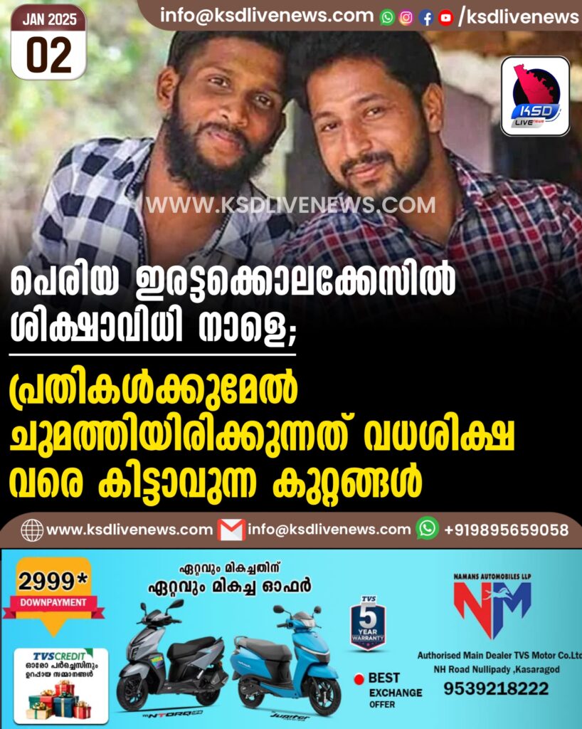 പെരിയ ഇരട്ടക്കൊലക്കേസില്‍ ശിക്ഷാവിധി നാളെ; പ്രതികള്‍ക്കുമേല്‍ ചുമത്തിയിരിക്കുന്നത് വധശിക്ഷ വരെ കിട്ടാവുന്ന കുറ്റങ്ങള്‍
