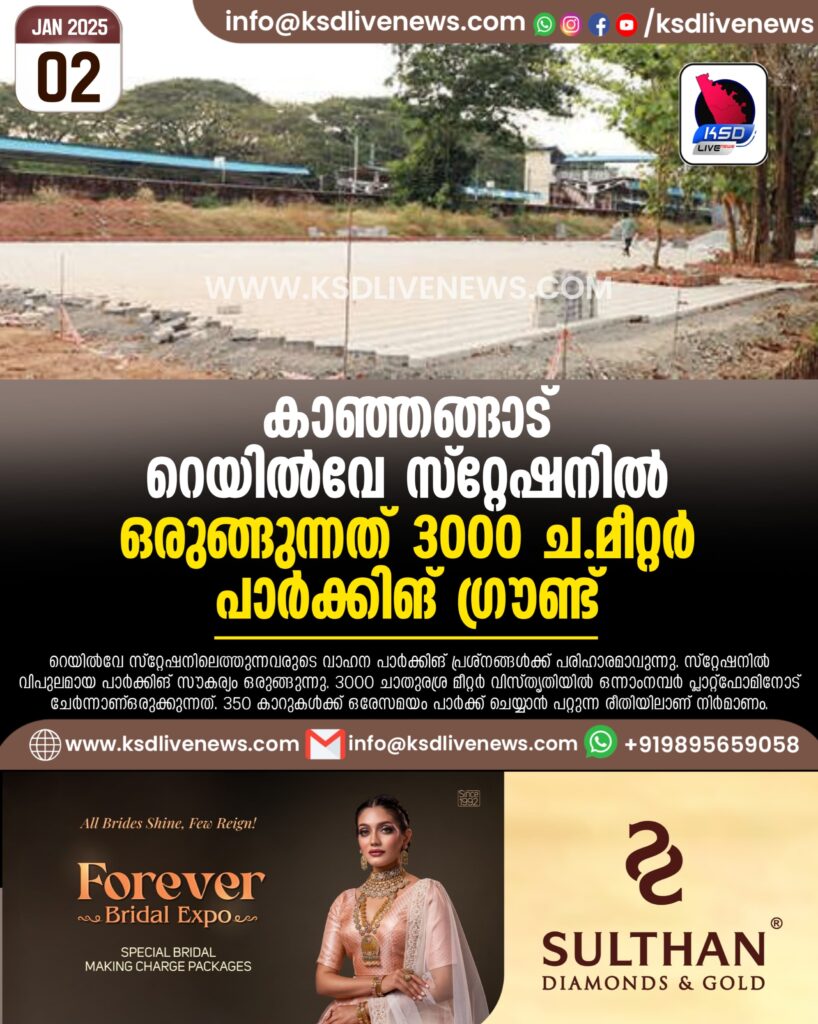 കാഞ്ഞങ്ങാട് റെയിൽവേ സ്റ്റേഷനിൽ ഒരുങ്ങുന്നത് 3000 ച.മീറ്റർ പാർക്കിങ് ഗ്രൗണ്ട്