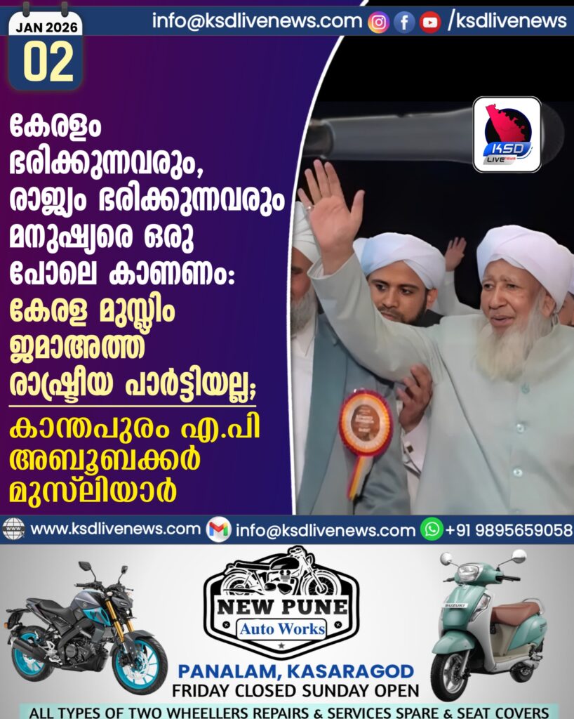കേരളം ഭരിക്കുന്നവരും, രാജ്യം ഭരിക്കുന്നവരും മനുഷ്യരെ ഒരു പോലെ കാണണം; കേരള മുസ്ലിം ജമാഅത്ത് രാഷ്ട്രീയ പാർട്ടിയല്ല’; കാന്തപുരം എ പി അബൂബക്കർ മുസ്ലിയാർ