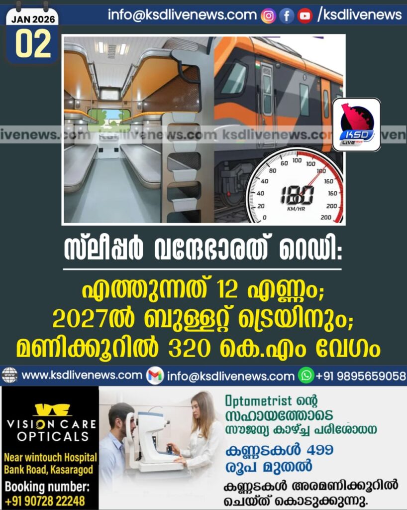 സ്ലീപ്പർ വന്ദേഭാരത് റെഡി: എത്തുന്നത് 12 എണ്ണം; 2027-ൽ ബുള്ളറ്റ് ട്രെയിനും; മണിക്കൂറിൽ 320 കെ.എം വേഗം