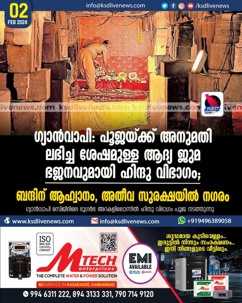 ഗ്യാൻവാപി: പൂജയ്ക്ക് അനുമതി ലഭിച്ച ശേഷമുള്ള ആദ്യ ജുമ, ഭജനവുമായി ഹിന്ദു വിഭാഗം; ബന്ദിന് ആഹ്വാനം, അതീവ സുരക്ഷയിൽ നഗരം