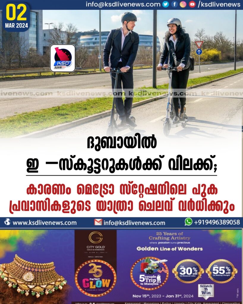 ദുബായിൽ ഇ –സ്കൂട്ടറുകൾക്ക് വിലക്ക്; കാരണം മെട്രോ സ്റ്റേഷനിലെ പുക, പ്രവാസികളുടെ യാത്രാ ചെലവ് വർധിക്കും