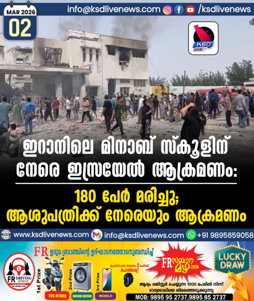 ഇറാനിലെ മിനാബ് സ്കൂളിന് നേരെ ഇസ്രയേൽ ആക്രമണം: 180 പേർ മരിച്ചു; ആശുപത്രിക്ക് നേരെയും ആക്രമണം