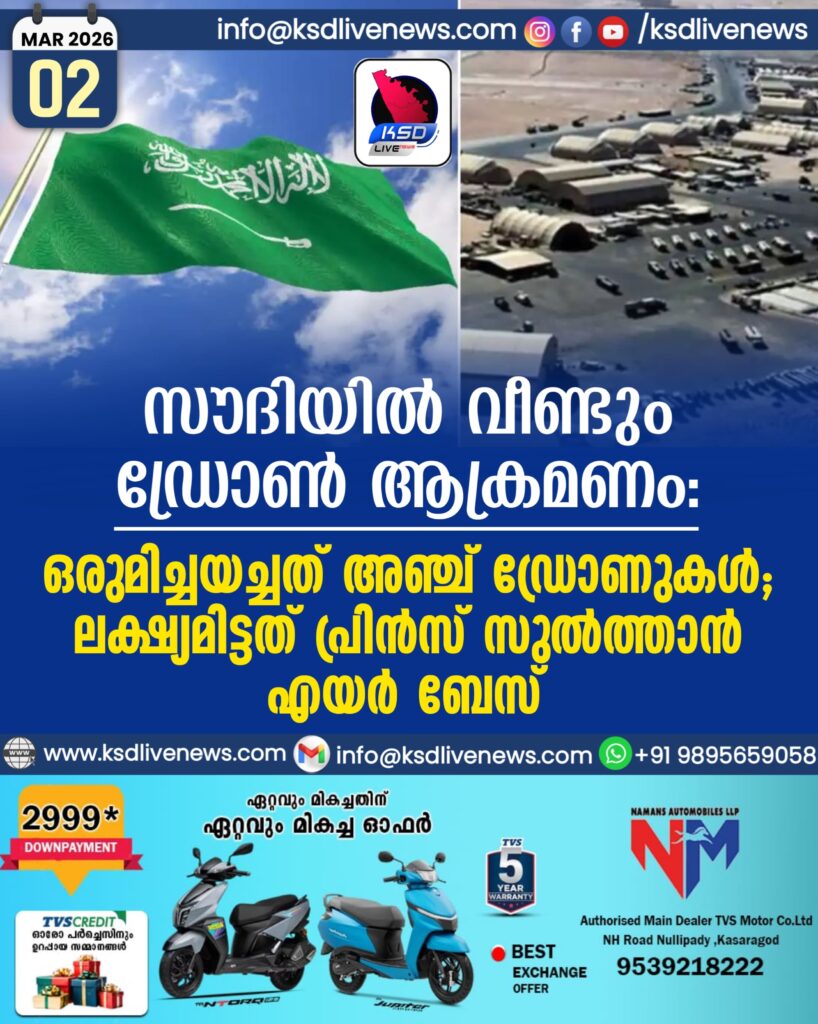 സൗദിയില് വീണ്ടും ഡ്രോണ് ആക്രമണം; ഒരുമിച്ചയച്ചത് അഞ്ച് ഡ്രോണുകള്, ലക്ഷ്യമിട്ടത് പ്രിൻസ് സുല്ത്താൻ എയര് ബേസ്