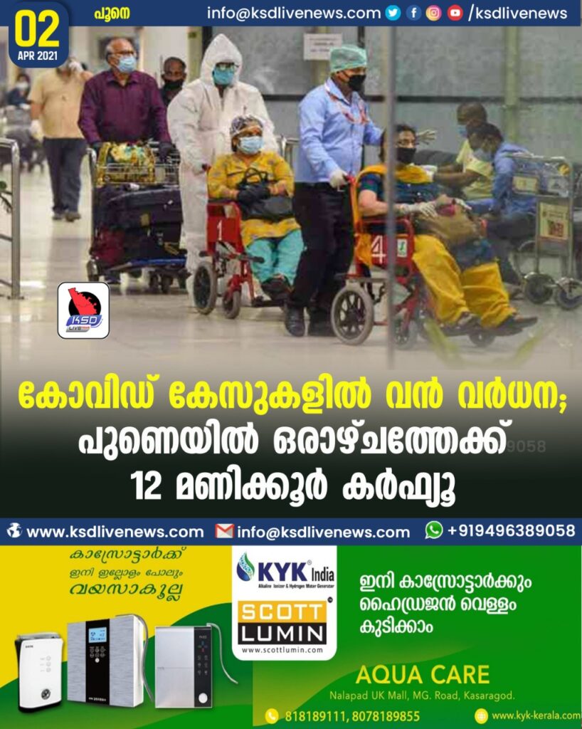 കോവിഡ് കേസുകളില് വന്വര്ധന; പുണെയില് ഒരാഴ്ചത്തേക്ക് 12 മണിക്കൂര് കര്ഫ്യൂ