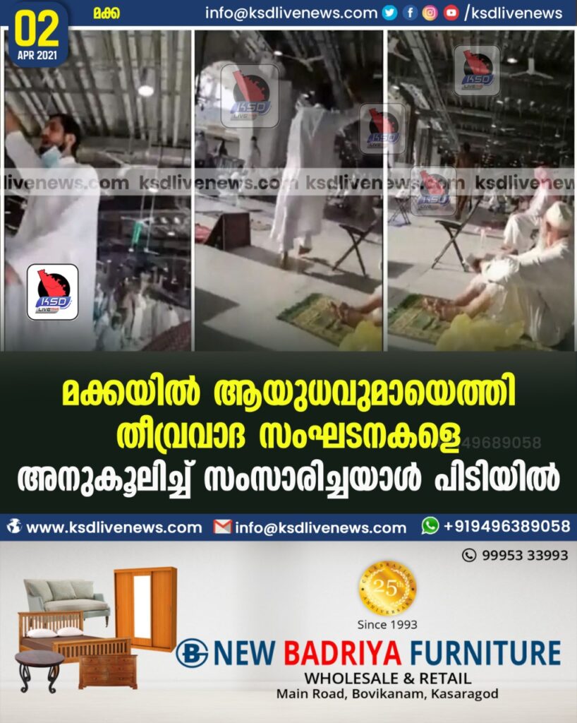 മക്കയില്‍ ആയുധവുമായെത്തി തീവ്രവാദ സംഘടനകളെ അനുകൂലിച്ച്‌ സംസാരിച്ചയാള്‍ പിടിയില്‍