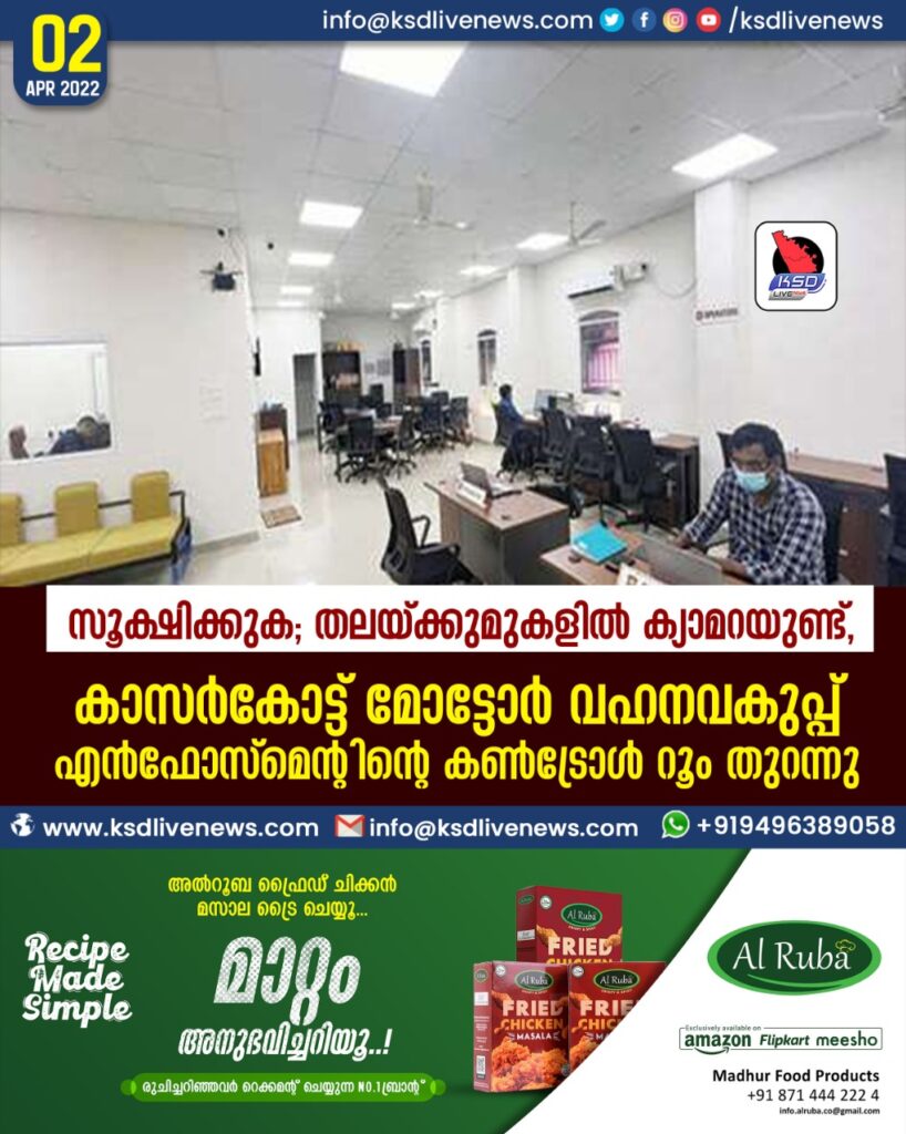 സൂക്ഷിക്കുക; തലയ്ക്കുമുകളിൽ ക്യാമറയുണ്ട്, കാസർകോട്ട് മോട്ടോർ വഹനവകുപ്പ് എൻഫോസ്മെന്റിന്റെ കൺട്രോൾ റൂം തുറന്നു