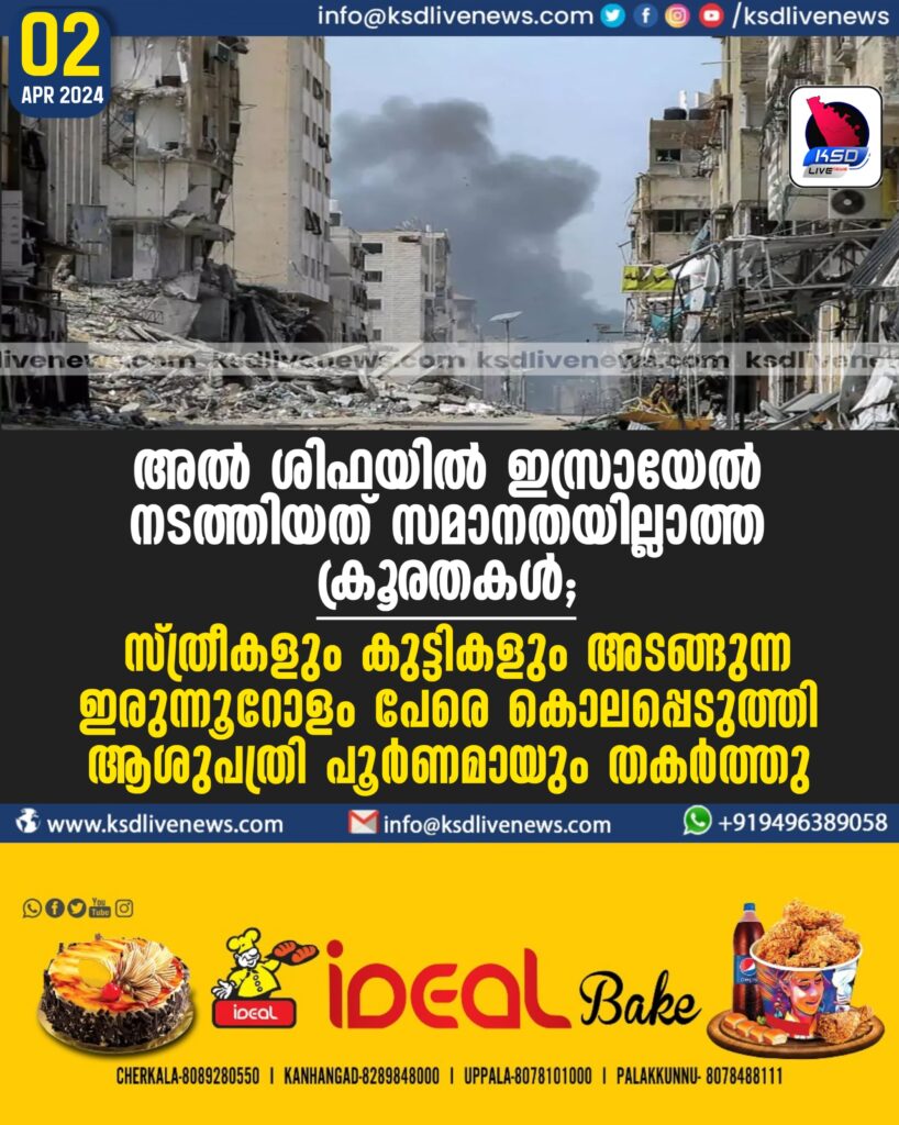 അല് ശിഫയില് ഇസ്രായേല് നടത്തിയത് സമാനതയില്ലാത്ത ക്രൂരതകള്; സ്ത്രീകളും കുട്ടികളും അടങ്ങുന്ന ഇരുന്നൂറോളം പേരെ കൊലപ്പെടുത്തി ആശുപത്രി പൂർണമായും തകർത്തു
