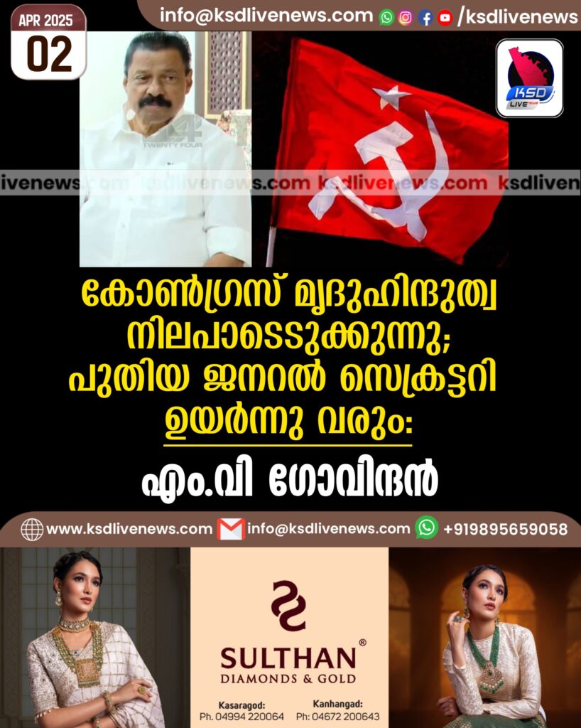 കോൺഗ്രസ് മൃദുഹിന്ദുത്വ നിലപാടെടുക്കുന്നു; പുതിയ ജനറൽ സെക്രട്ടറി ഉയർന്നു വരും’; എം വി ഗോവിന്ദൻ