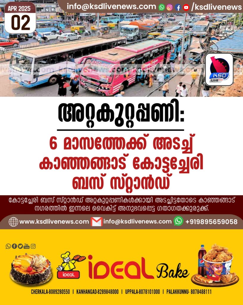 അറ്റകുറ്റപ്പണി: 6 മാസത്തേക്ക് അടച്ച് കാഞ്ഞങ്ങാട് കോട്ടച്ചേരി ബസ് സ്റ്റാൻഡ്