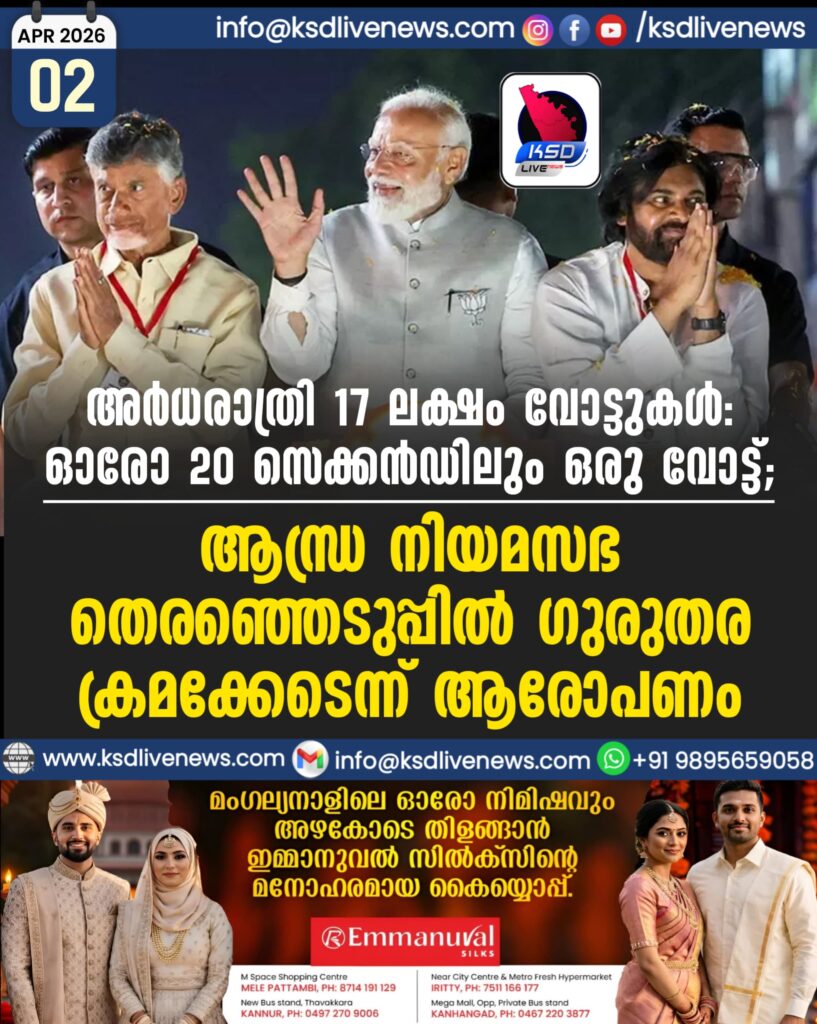 അർധരാത്രി 17 ലക്ഷം വോട്ടുകൾ, ഓരോ 20 സെക്കൻഡിലും ഒരു വോട്ട്; ആന്ധ്ര നിയമസഭ തെരഞ്ഞെടുപ്പിൽ ഗുരുതര ക്രമക്കേടെന്ന് ആരോപണം