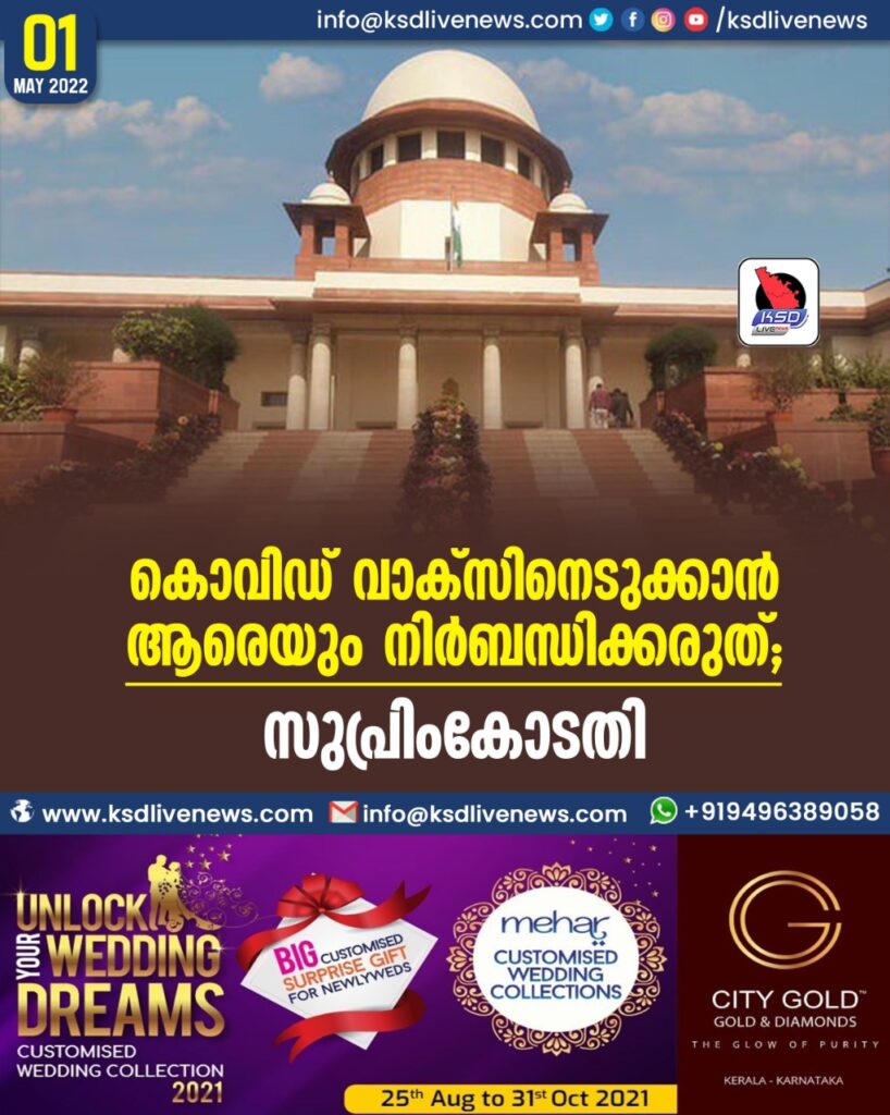 കൊവിഡ് വാക്സിനെടുക്കാന് ആരെയും നിര്ബന്ധിക്കരുത്; സുപ്രിംകോടതി
