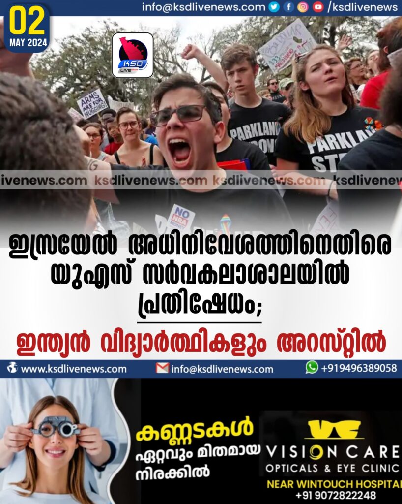 ഇസ്രയേല് അധിനിവേശത്തിനെതിരെ യുഎസ് സര്വകലാശാലയില് പ്രതിഷേധം; ഇന്ത്യന് വിദ്യാര്ത്ഥികളും അറസ്റ്റില്