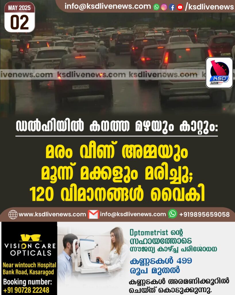 ഡല്ഹിയില് കനത്ത മഴയും കാറ്റും; മരം വീണ് അമ്മയും മൂന്ന് മക്കളും മരിച്ചു; 120 വിമാനങ്ങള് വൈകി; വിഡിയോ