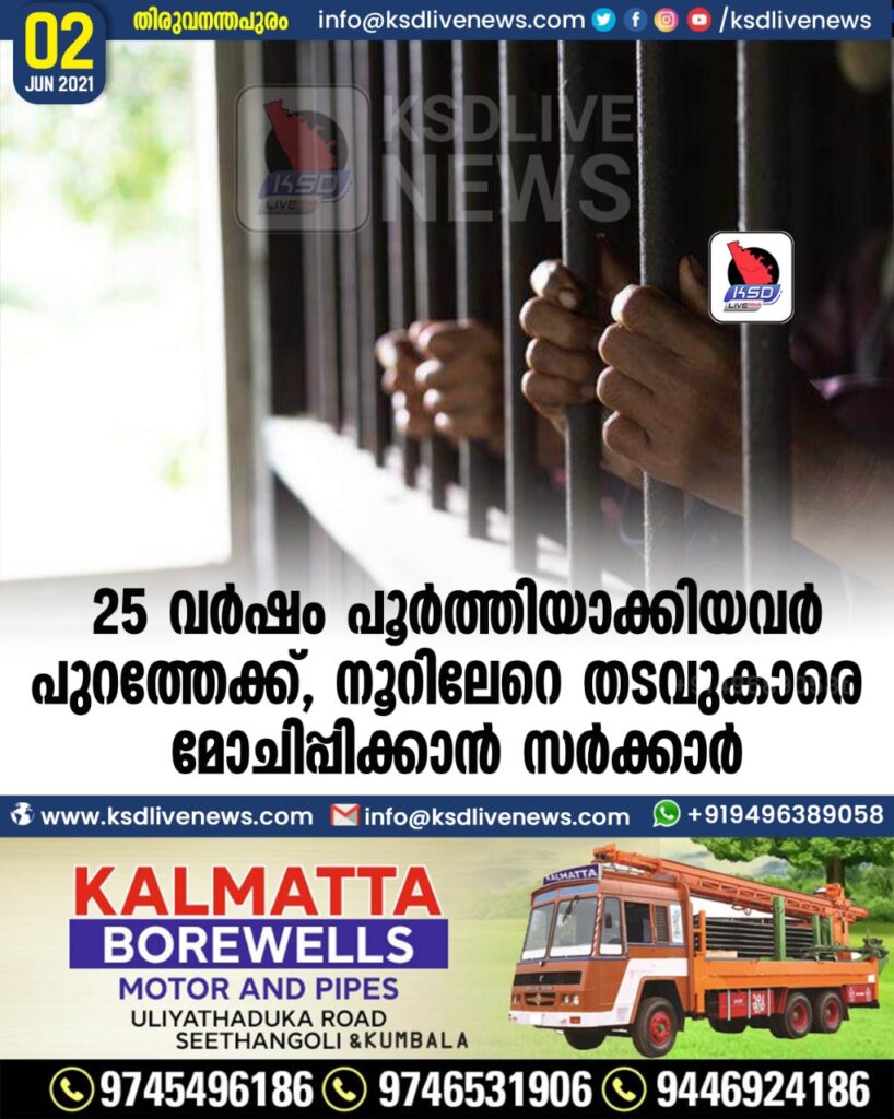 25 വര്ഷം പൂര്ത്തിയാക്കിയവര് പുറത്തേക്ക്, നൂറിലേറെ തടവുകാരെ മോചിപ്പിക്കാന് സര്ക്കാര്