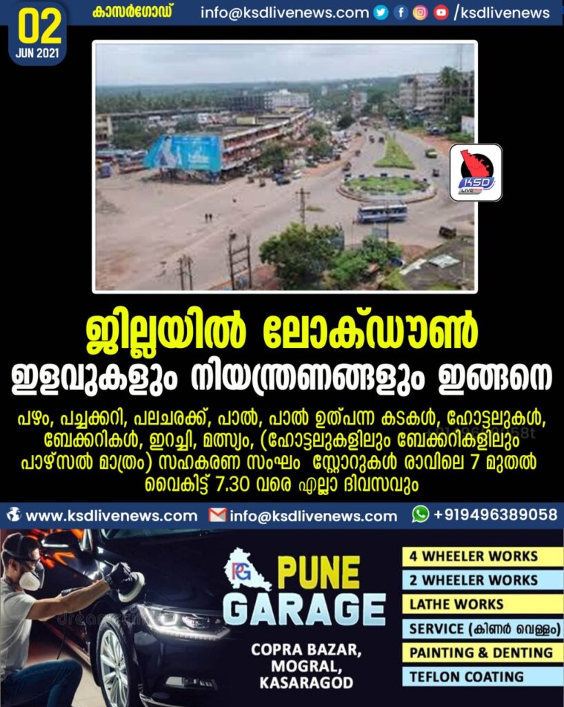 കാസർകോട് ജില്ലയിൽ ലോക്ഡൗൺ ഇളവുകളും നിയന്ത്രണങ്ങളും ഇങ്ങനെ