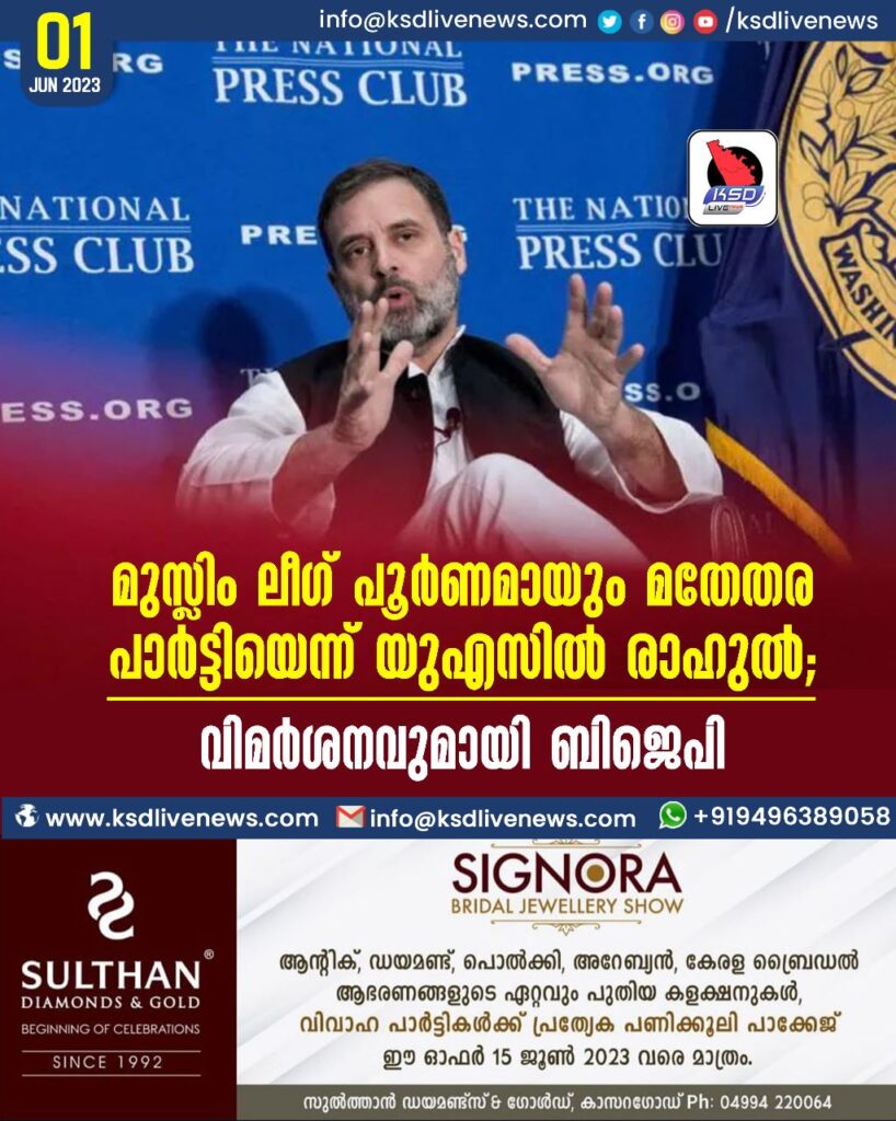 മുസ്ലിം ലീഗ് പൂര്‍ണമായും മതേതര പാര്‍ട്ടിയെന്ന് യുഎസില്‍ രാഹുല്‍; വിമര്‍ശനവുമായി ബിജെപി