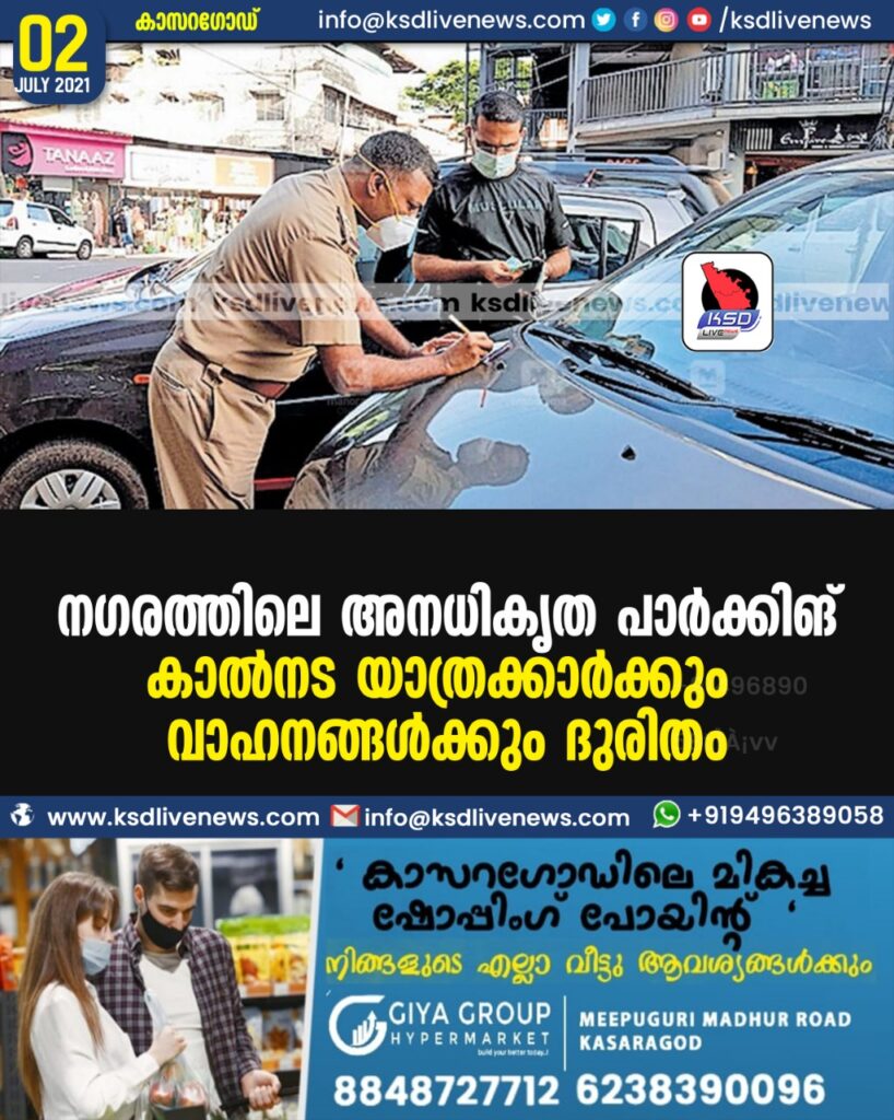 നഗരത്തിലെ അനധികൃത പാർക്കിങ് കാൽനട യാത്രക്കാർക്കും വാഹനങ്ങൾക്കും ദുരിതം