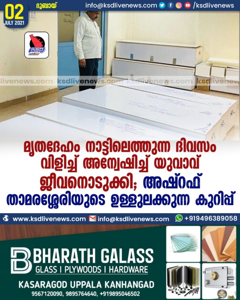 മൃതദേഹം നാട്ടിലെത്തുന്ന ദിവസം വിളിച്ച് അന്വേഷിച്ച് യുവാവ് ജീവനൊടുക്കി -അഷ്റഫ് താമരശ്ശേരിയുടെ ഉള്ളുലക്കുന്ന കുറിപ്പ്