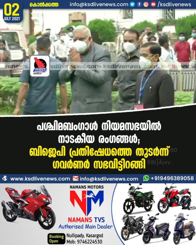 പശ്ചിമബംഗാള് നിയമസഭയില് നാടകീയ രംഗങ്ങള്; ബിജെപി പ്രതിഷേധത്തെ തുടർന്ന് ഗവര്ണര് സഭവിട്ടിറങ്ങി