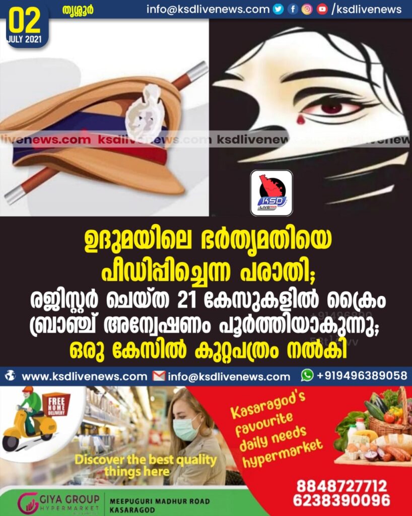 ഉദുമയിലെ ഭര്‍തൃമതിയെ പീഡിപ്പിച്ചെന്ന പരാതി; രജിസ്റ്റര്‍ ചെയ്ത 21 കേസുകളില്‍ ക്രൈംബ്രാഞ്ച് അന്വേഷണം പൂർത്തിയാകുന്നു ; ഒരു കേസില്‍ കുറ്റപത്രം നല്‍കി