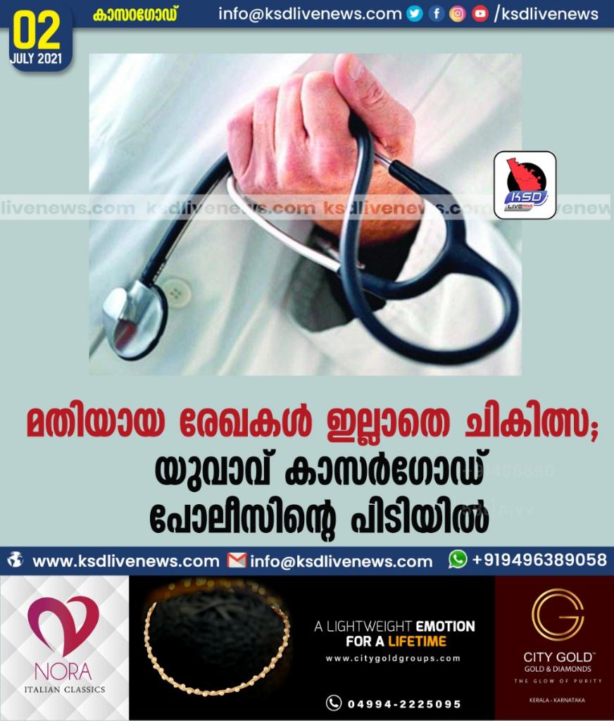 മതിയായ രേഖകൾ ഇല്ലാതെ ചികിത്സ ; യുവാവ് കാസർഗോഡ് പോലീസിന്റെ പിടിയിൽ