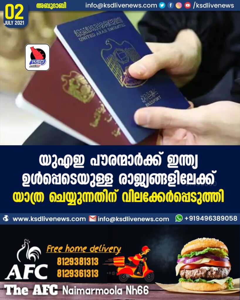 യുഎഇ പൗരന്മാര്ക്ക് ഇന്ത്യ ഉള്പ്പെടെയുള്ള രാജ്യങ്ങളിലേക്ക് യാത്ര ചെയ്യുന്നതിന് വിലക്കേര്പ്പെടുത്തി