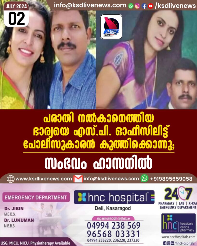 പരാതി നല്കാനെത്തിയ ഭാര്യയെ എസ്.പി. ഓഫീസിലിട്ട് പോലീസുകാരന് കുത്തിക്കൊന്നു; സംഭവം ഹാസനില്