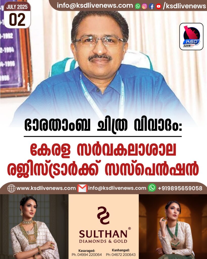 ഭാരതാംബ ചിത്ര വിവാദം: കേരള സര്വകലാശാല രജിസ്ട്രാര്ക്ക് സസ്പെന്ഷന്