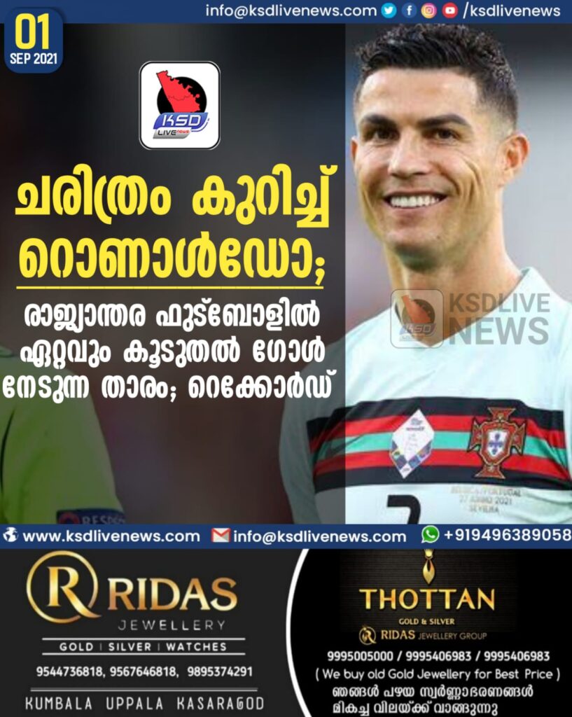 ചരിത്രം കുറിച്ച് റൊണാള്ഡോ, രാജ്യാന്തര ഫുട്ബോളില് ഏറ്റവും കൂടുതല് ഗോള് നേടുന്ന താരം; റെക്കോര്ഡ്