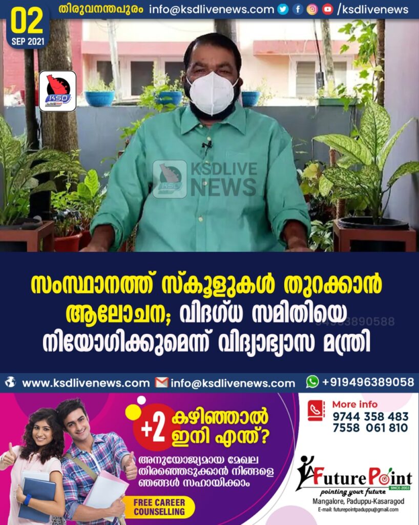 സംസ്ഥാനത്ത് സ്കൂളുകൾ തുറക്കാന് ആലോചന; വിദഗ്ധ സമിതിയെ നിയോഗിക്കുമെന്ന് വിദ്യാഭ്യാസ മന്ത്രി