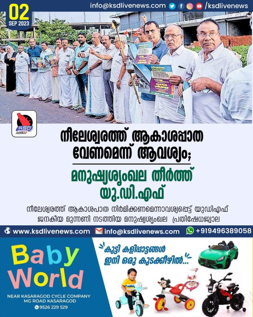 നീലേശ്വരത്ത് ആകാശപ്പാത വേണമെന്ന് ആവശ്യം; മനുഷ്യശൃംഖല തീർത്ത് യുഡിഎഫ്