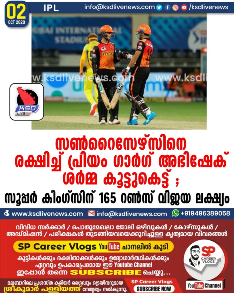 സണ്റൈസേഴ്സിനെ രക്ഷിച്ച് പ്രിയം ഗാര്ഗ് – അഭിഷേക് ശര്മ്മ കൂട്ടുകെട്ട് ;