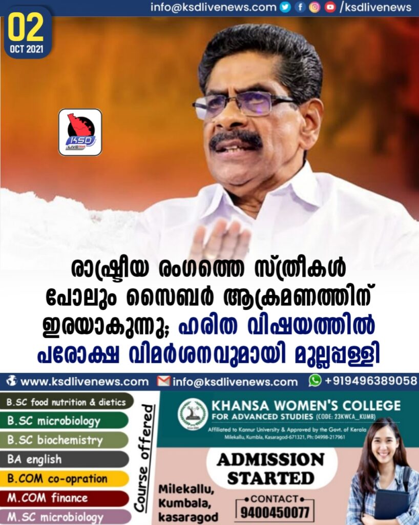 രാഷ്ട്രീയ രംഗത്തെ സ്ത്രീകൾ പോലും സൈബർ ആക്രമണത്തിന് ഇരയാകുന്നു; ഹരിത വിഷയത്തിൽ പരോക്ഷ വിമർശനവുമായി മുല്ലപ്പള്ളി