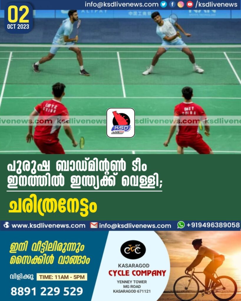 പുരുഷ ബാഡ്മിന്റണ് ടീം ഇനത്തില് ഇന്ത്യക്ക് വെള്ളി; ചരിത്രനേട്ടം