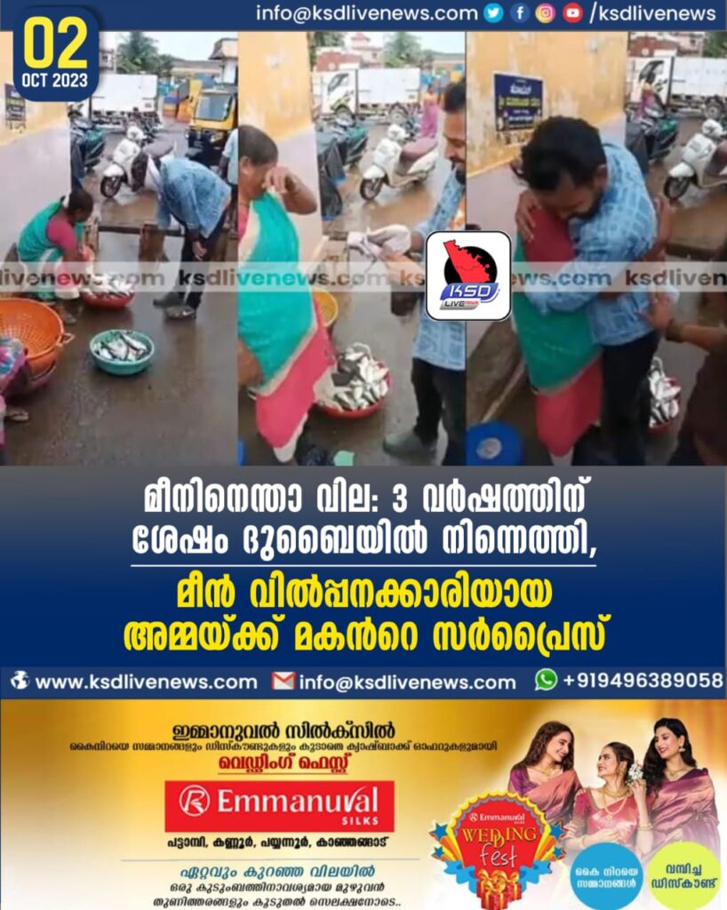 മീനിനെന്താ വില’; 3 വര്ഷത്തിന് ശേഷം ദുബൈയില് നിന്നെത്തി, മീൻ വില്പ്പനക്കാരിയായ അമ്മയ്ക്ക് മകന്റെ സര്പ്രൈസ്/ വീഡിയോ