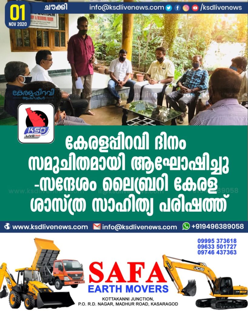 കേരളപ്പിറവി ദിനം സമുചിതമായി ആഘോഷിച്ചു-സന്ദേശം ലൈബ്രറി കേരള ശാസ്ത്ര സാഹിത്യ പരിഷത്ത്