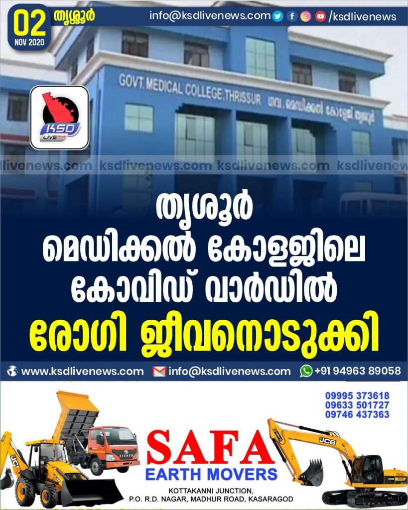തൃശൂർ മെഡിക്കൽ കോളജിലെ കോവിഡ് വാർഡിൽ രോഗി ജീവനൊടുക്കി