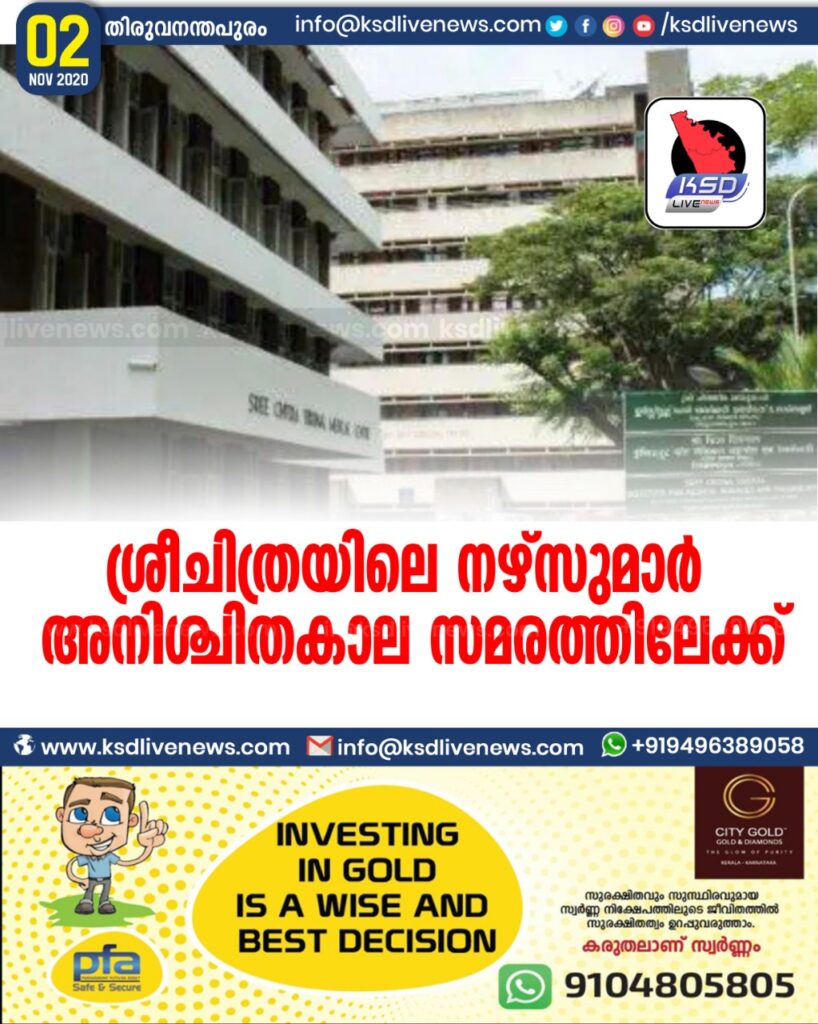 ശ്രീചിത്രയിലെ നഴ്സുമാർ അനിശ്ചിതകാല സമരത്തിലേക്ക്
