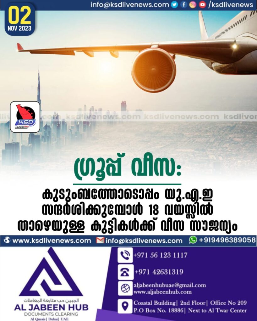 ഗ്രൂപ്പ് വീസ: കുടുംബത്തോടൊപ്പം യുഎഇ സന്ദർശിക്കുമ്പോൾ 18 വയസ്സിൽ താഴെയുള്ള കുട്ടികൾക്ക് വീസ സൗജന്യം